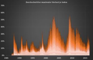 Ein Vergleich von 17 globalen Aktienindizes im Zeitraum von 1986 bis 2016 zeigt, dass es im Mittel knapp ein halbes Jahr dauert ehe Verluste von 30% eintreten. Durchschnittlich ein ganzes Jahr vergeht, bevor es zu Verlusten von 40% kommt. Ein 50%-Verlust lässt gut anderhalb Jahre vor seinem Eintritt im Mittel verstreichen.